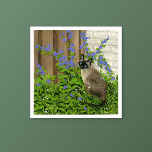 Cat in the Garden Gouache Art Mini Print 8.5" x 8.5"