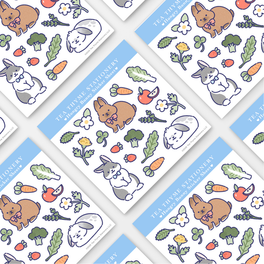 Hungry Bunny Mini Sticker Sheet 3.75" x 3.75" Waterproof Vinyl