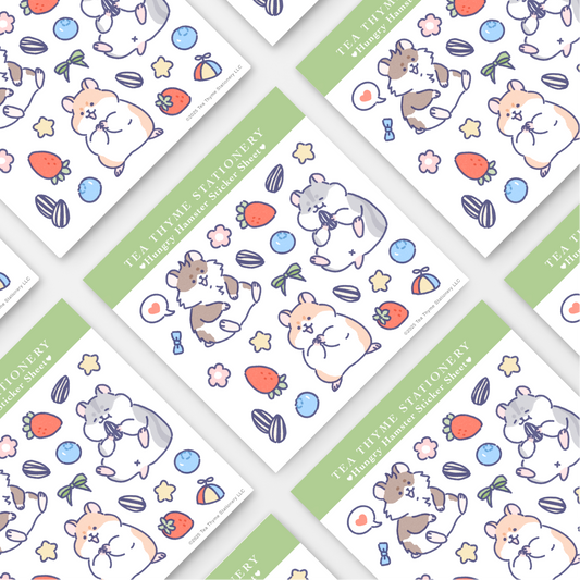 Hungry Hamster Mini Sticker Sheet 3.75" x 3.75" Waterproof Vinyl
