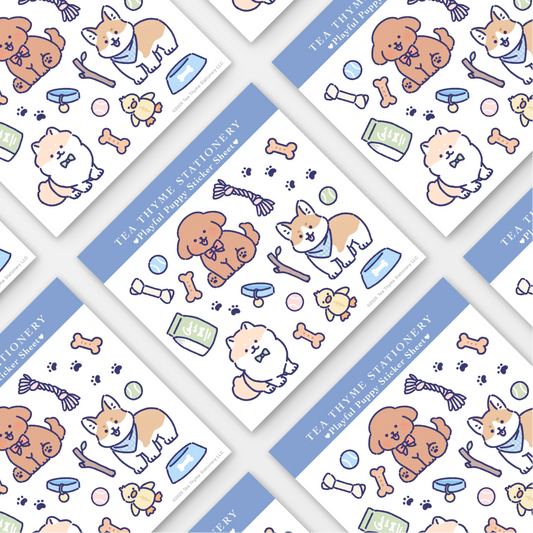 Playful Puppy Mini Sticker Sheet 3.75" x 3.75" Waterproof Vinyl