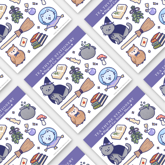 Magical Cat Mini Sticker Sheet 3.75" x 3.75" Waterproof Vinyl