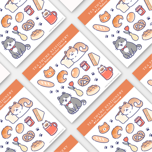 Cat Bakery Mini Sticker Sheet 3.75" x 3.75" Waterproof Vinyl