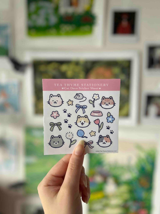 Cat Deco Mini Sticker Sheet 3.75" x 3.75" Waterproof Vinyl