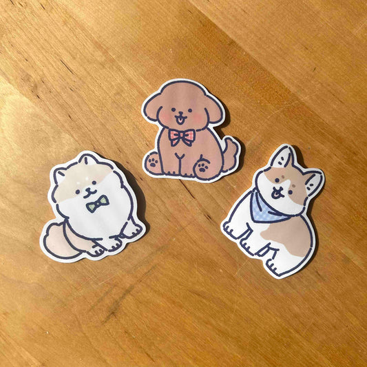 Set of 3 Dog Stickers Waterproof Vinyl Die-cut Stickers