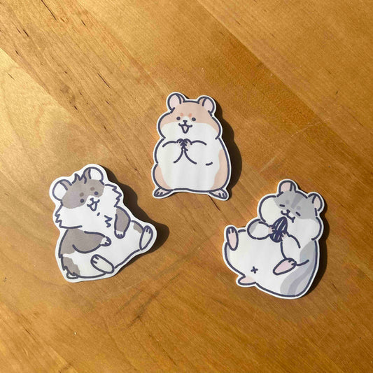 Set of 3 Hamster Stickers Waterproof Vinyl Die-cut Stickers