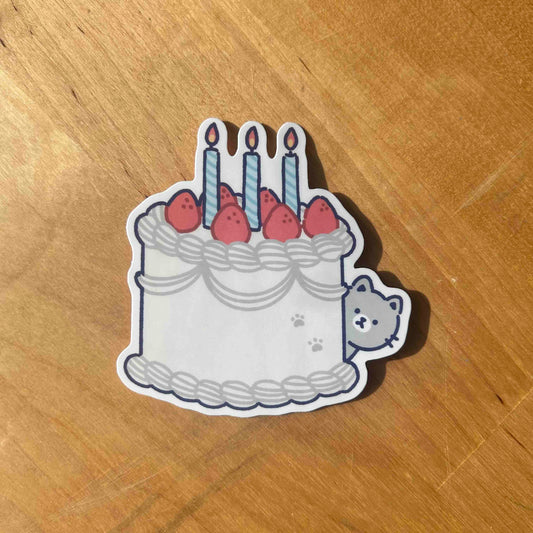 Cat Birthday Cake Sticker Waterproof Vinyl Die-cut Sticker