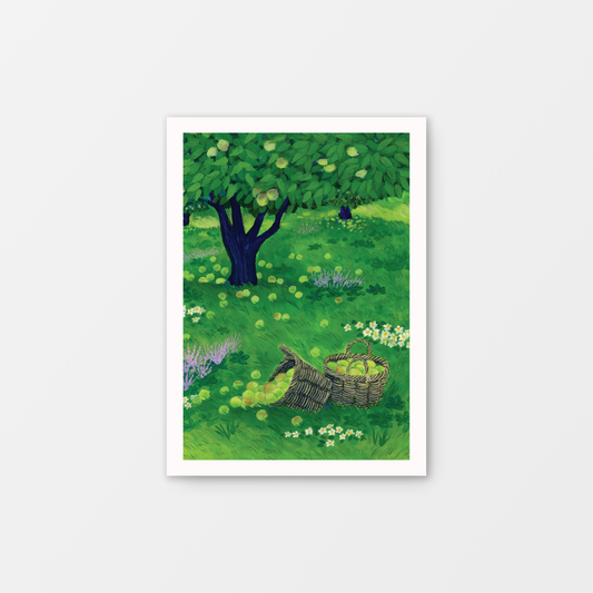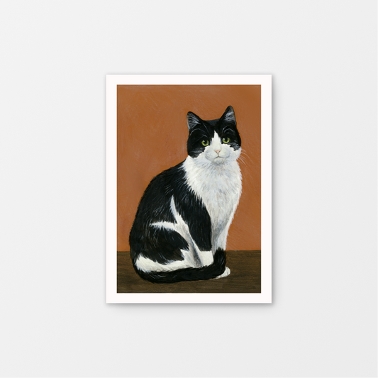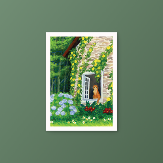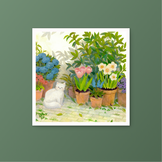 Cat in the Garden Gouache Art Mini Print 8.5" x 8.5"