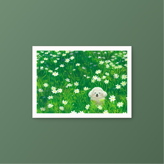 Puppy in a Field of Daisies Mini Art Print 7" x 5"