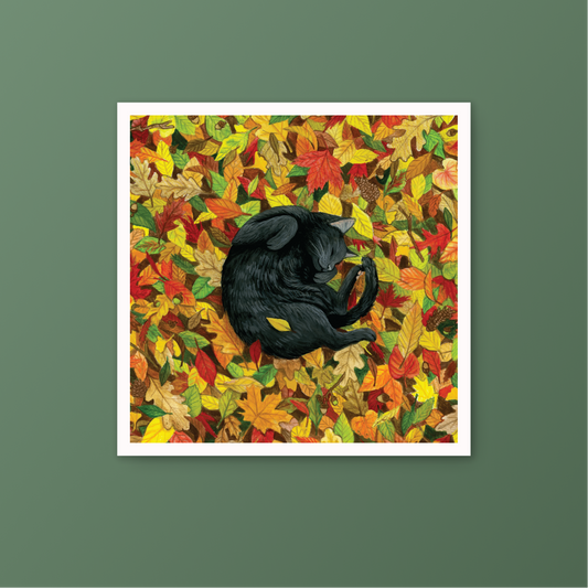 Fall Cat Nap Gouache Art Print 8.5" x 8.5"