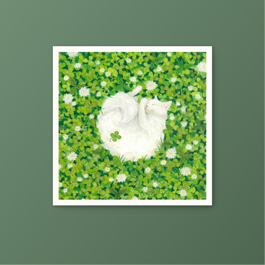 Clover Cat Nap Gouache Art Mini Print 8.5" x 8.5"