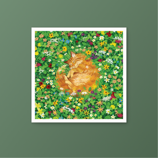 Flower Cat Nap Gouache Art Mini Print 8.5" x 8.5"