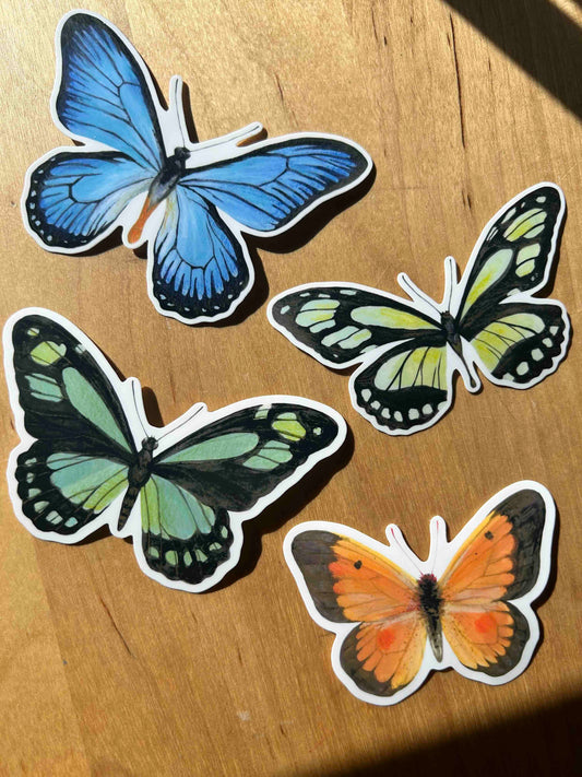 Set of 4 Butterfly Stickers Waterproof Vinyl Die-cut Stickers